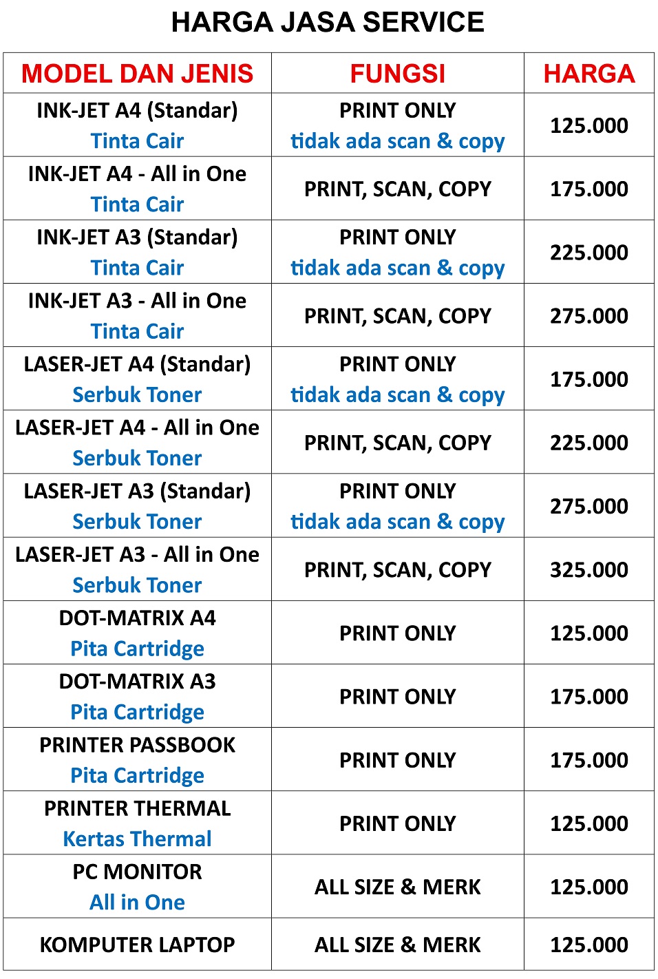HARGA JASA SERVICE