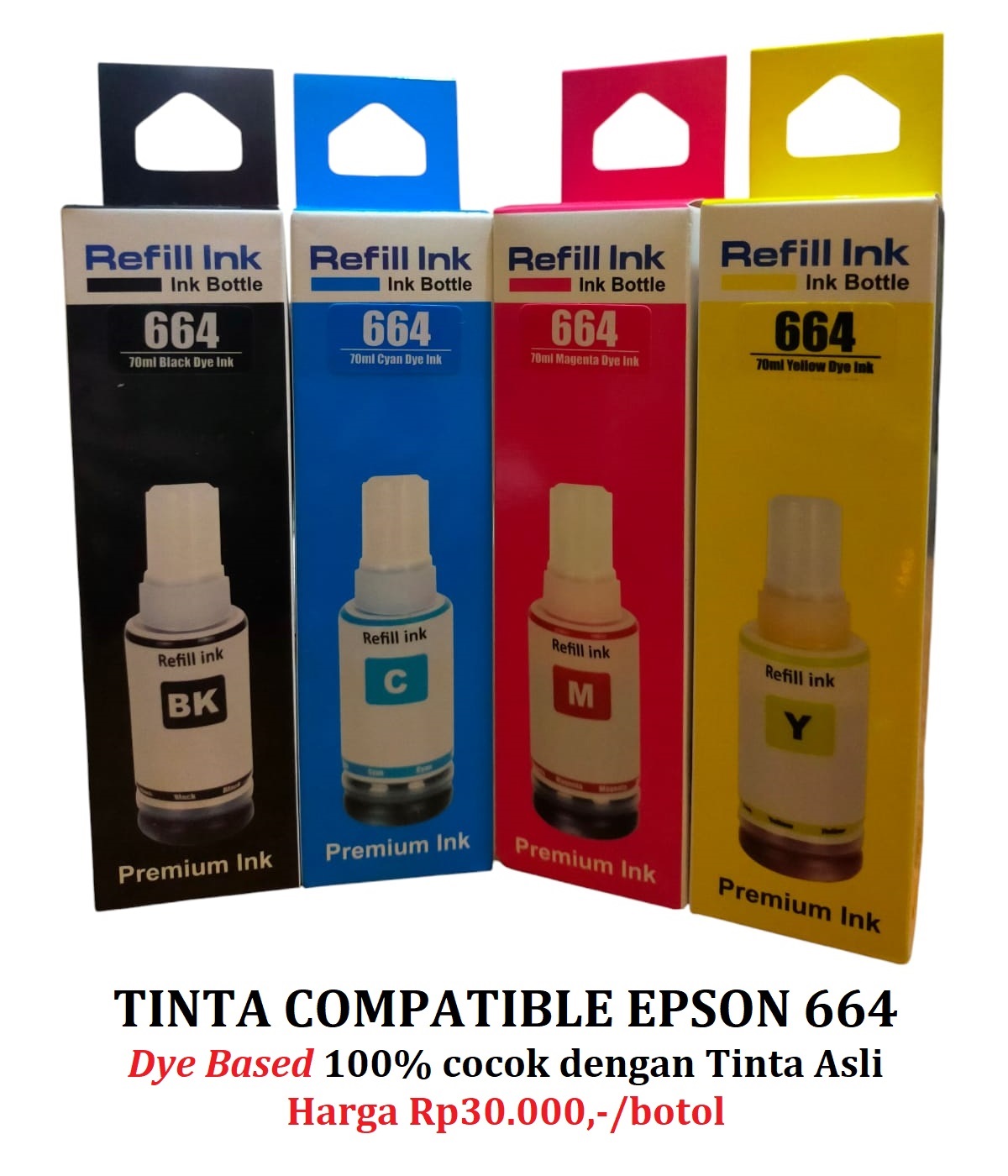 Tinta Refill Compatible berbasis cair (dye-based) yang dibuat dan diformulasikan untuk semua jenis printer menghasilkan cetakan cerah, tajam dan tahan lama.